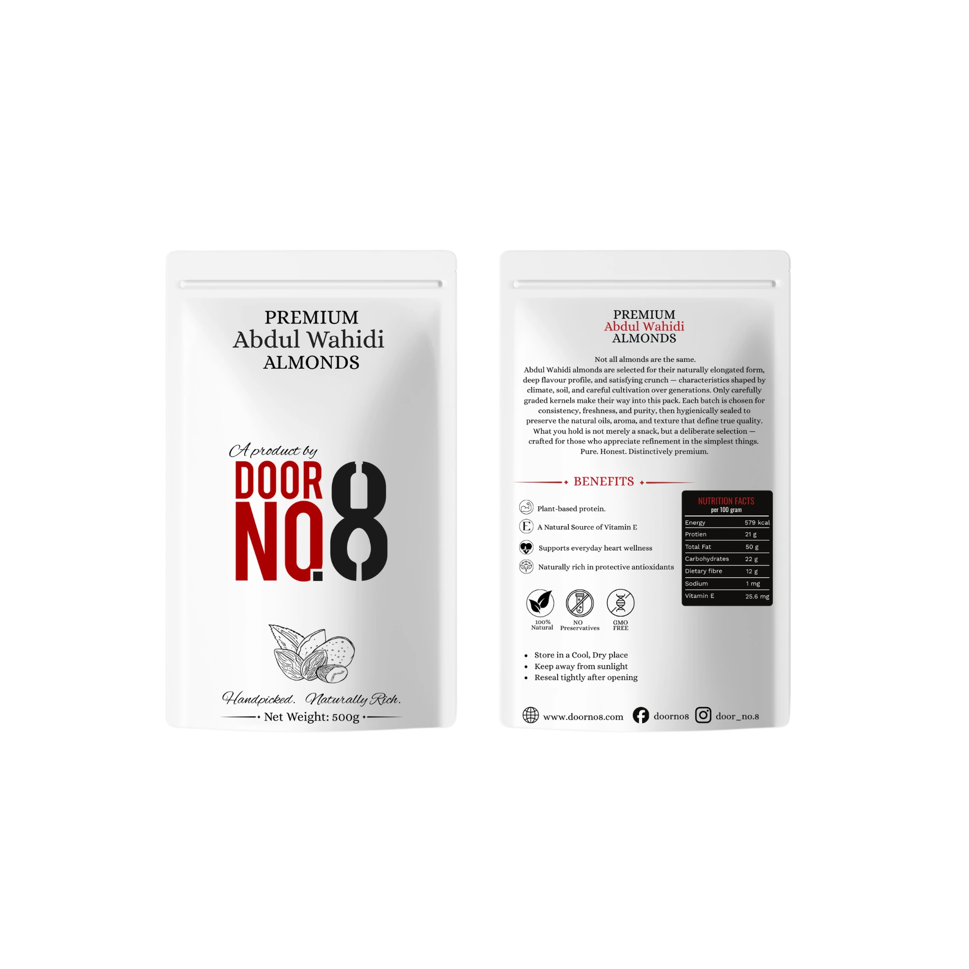 Abdul Wahidi almonds are selected for their naturally elongated form, deep flavour profile, and satisfying crunch — characteristics shaped by climate, soil, and careful cultivation over generations.